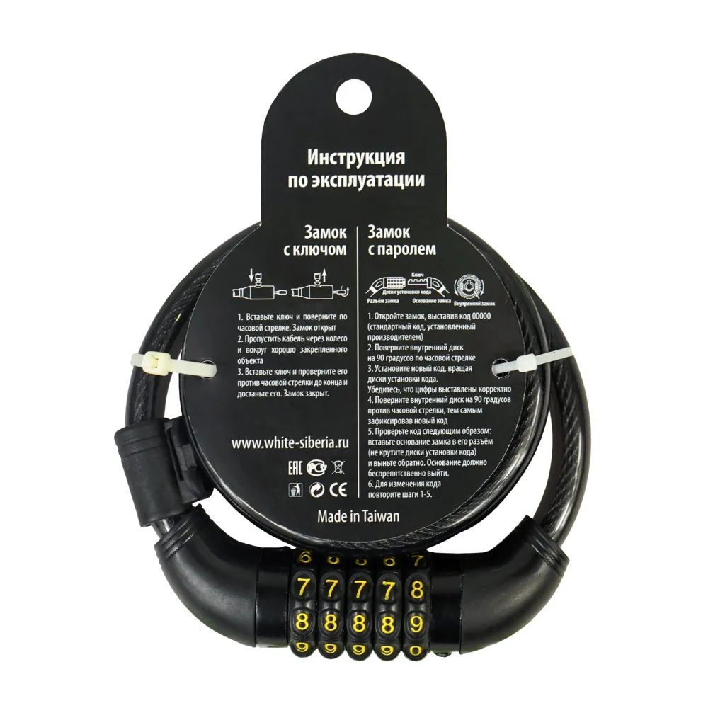 Замок тросовый WHITE SIBERIA (с кодом)