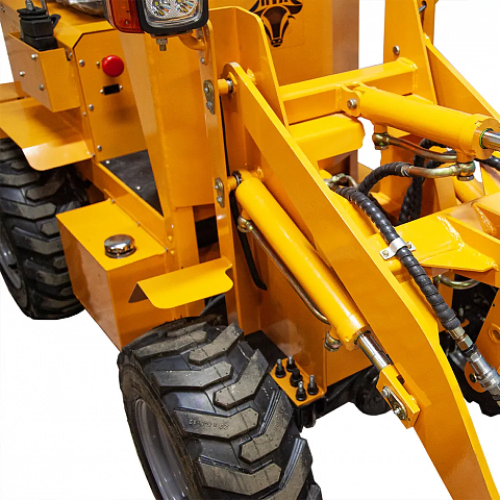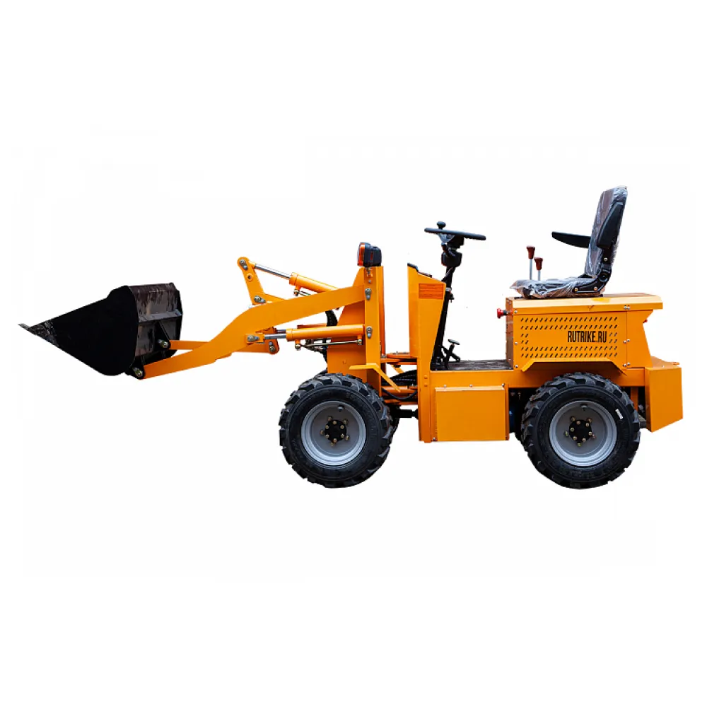 Особенностью этого погрузчика является наличие ковша, что делает его еще более универсальным и практичным в использовании. Ковш позволяет перевозить различные материалы, такие как песок, гравий или строительный мусор.