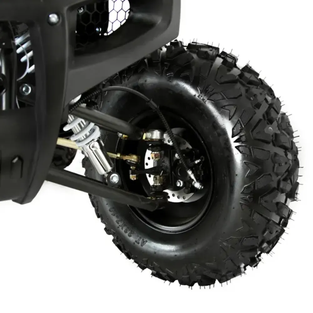 Конструкция из стали обеспечивает прочность и устойчивость при активной эксплуатации. Вес 200 кг делает квадроцикл относительно лёгким для данного класса техники, облегчая маневрирование и транспортировку. Колёса 10 дюймов обеспечивают хорошую амортизацию и комфорт даже на неровных участках.