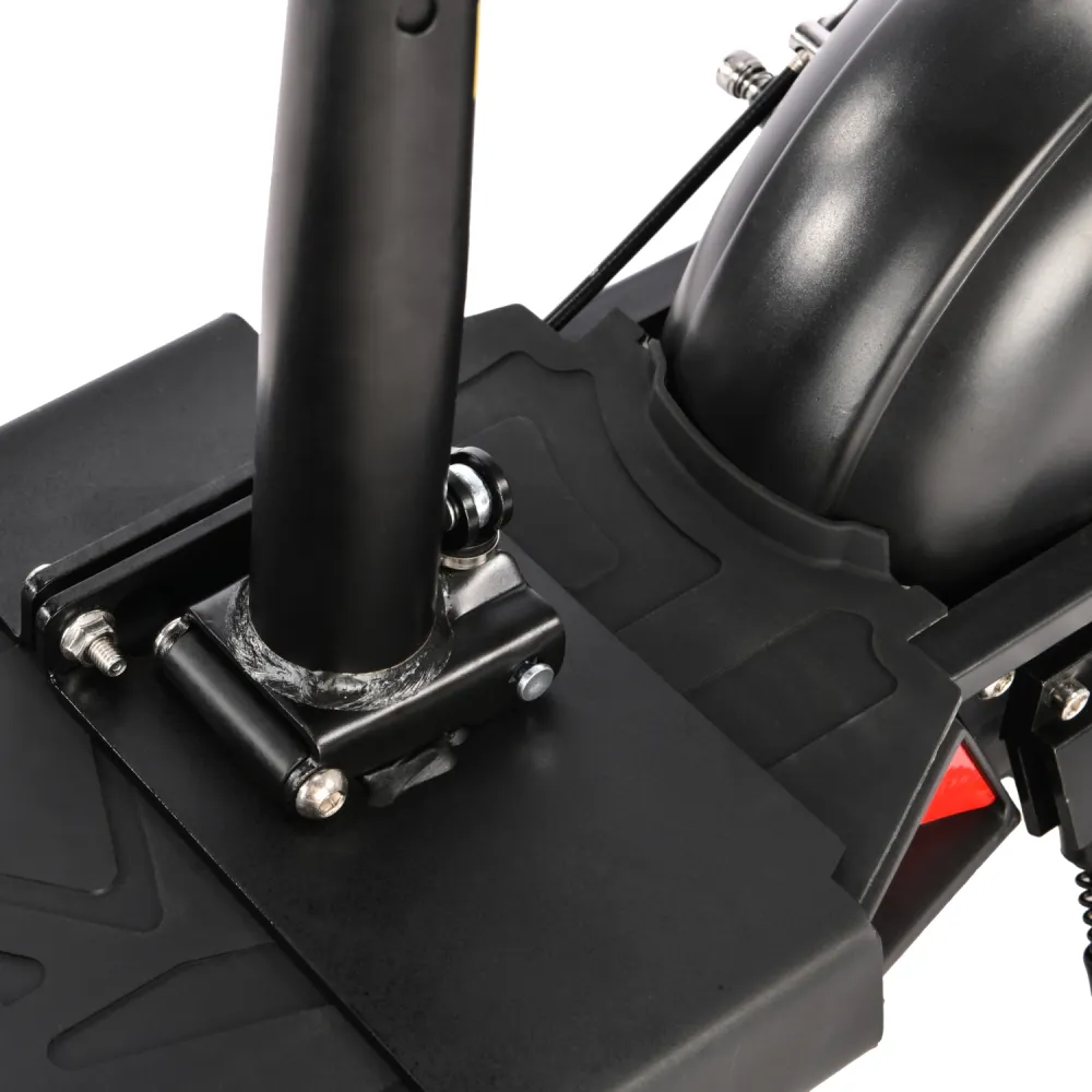 Техника оснащена удобным сиденьем, повторяющем анатомические части тела. При мощности мотора 1000 Вт максимально допустимая производителем скорость составляет 55 км/час. Запас хода электросамоката составляет 55 км. Время зарядки батареи – 8 часов.