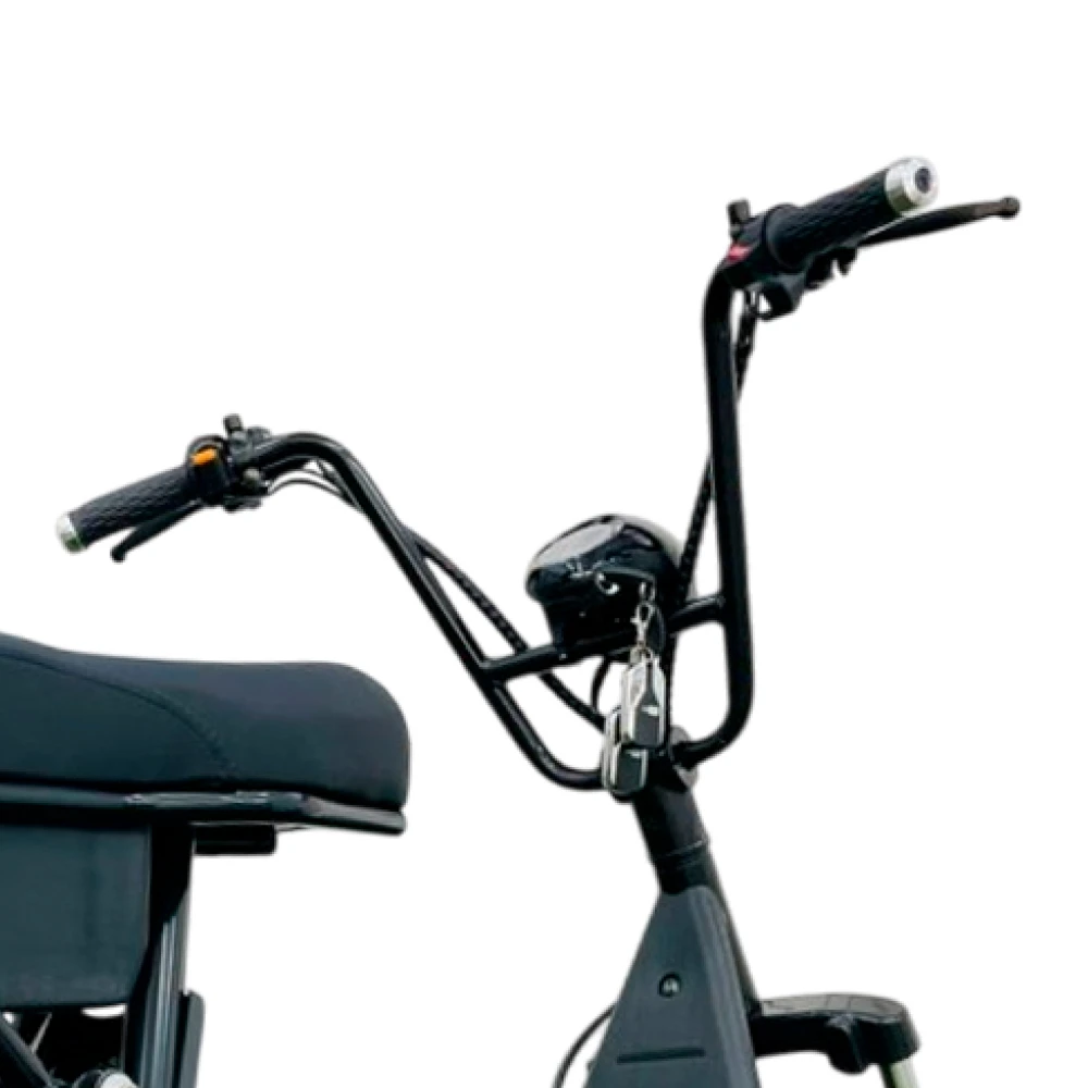 Электроскутер предназначен для 2-х ездоков, один из которых пассажир. Комфорт езды на дальние расстояния обеспечены анатомическим сиденьем. Пассажирское оснащено мягкой спинкой. В целом особенности сиденья снимают ощущения усталости и нагрузку на позвоночник.