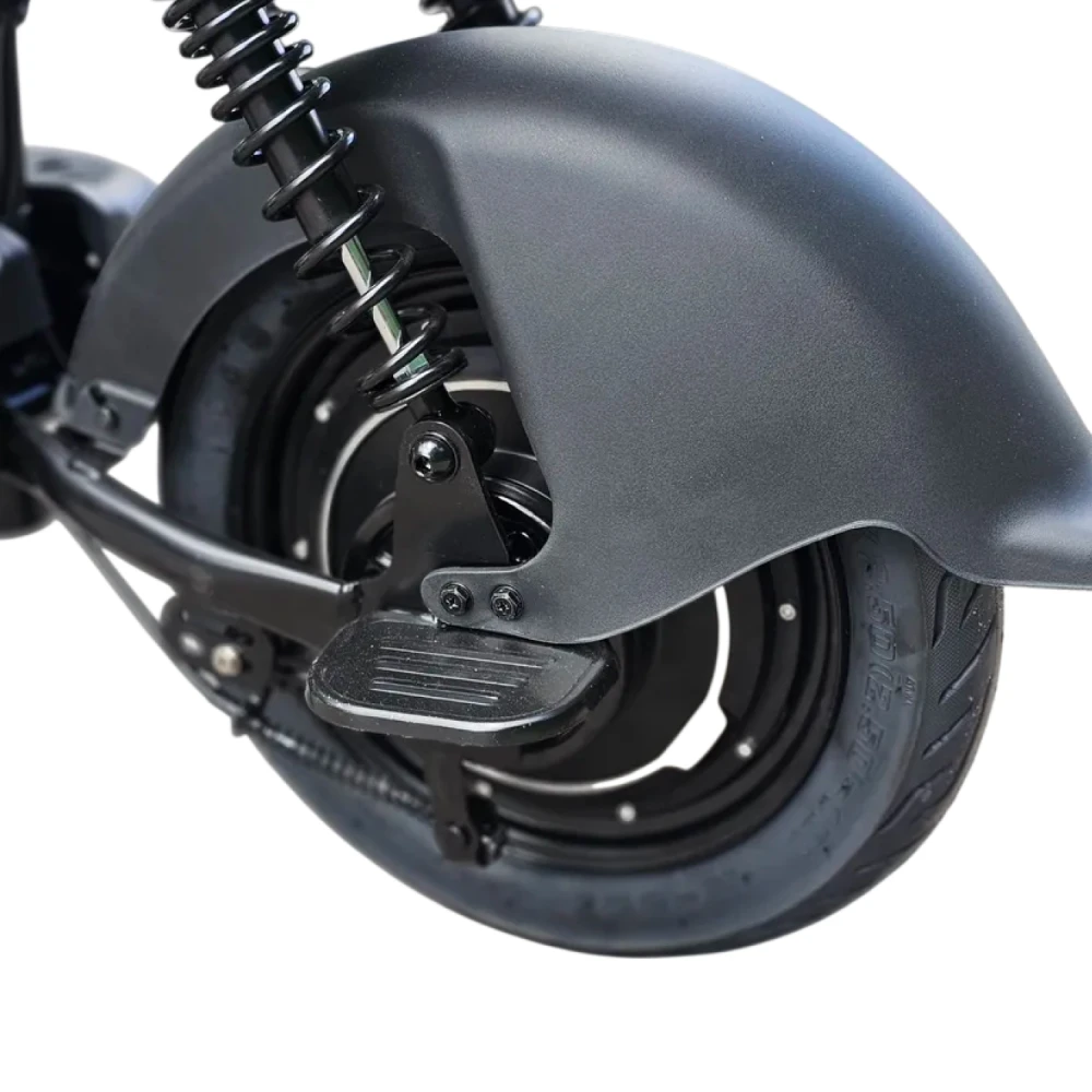 Задний привод с мотором 500W позволяет развивать скорость до 40 км/ч, а аккумулятор 15Ah (48V) обеспечивает запас хода до 40 км на одном заряде. Полностью зарядить батарею можно всего за 5 часов, что идеально для ежедневного использования.