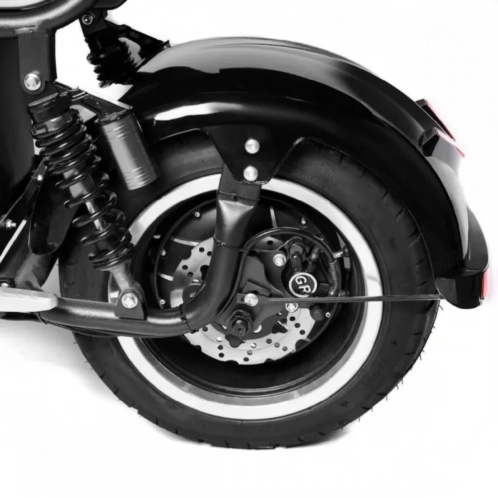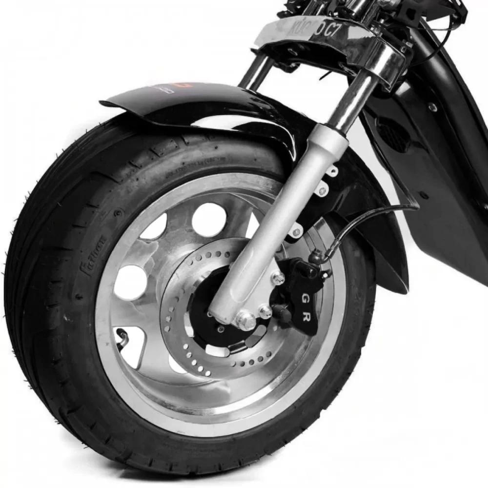 Электроскутер Citycoco Kugoo С7 - это новая модель 2021 года от компании kugoo, имеет отличные технические характеристики, отличается стильным дизайном. Kugoo c7 оснащен мощным мотором 3950 ватт, что позволяет ему развивать скорость до 60 км\ч. Предельный вес райдера составляет не более 200 килограмм. Электроскутер kugoo c7 подойдет для длительных поездок на большие расстояния. Благодаря батарее 50 Ah, характерной бренду kugoo, он может проехать до 70 км без дополнительного подзаряда. Безопасное торможение обеспечивают надежные дисковые тормоза. Мощный электроскутер заводиться ключом запуска, который идет в комплекте. Безопасную езду обеспечивают поворотники, сигнал поворотов и задние зеркала.Модель Citycoco kugoo оснащен LED фарами, которые обеспечивает райдеру комфортную езду в темное время суток. Главная особенность этой модели от компании kugoo двенадцати дюймовые диски и пневматические колеса. За счет этого на электроскутере можно ездить не только по городским трассам, но и по бездорожью. В нашем интернет-магазине вы можете купить электроскутер Kugoo С7 в черном цвете по выгодной цене а также аксессуары и запчасти к вашему электроскутеру.