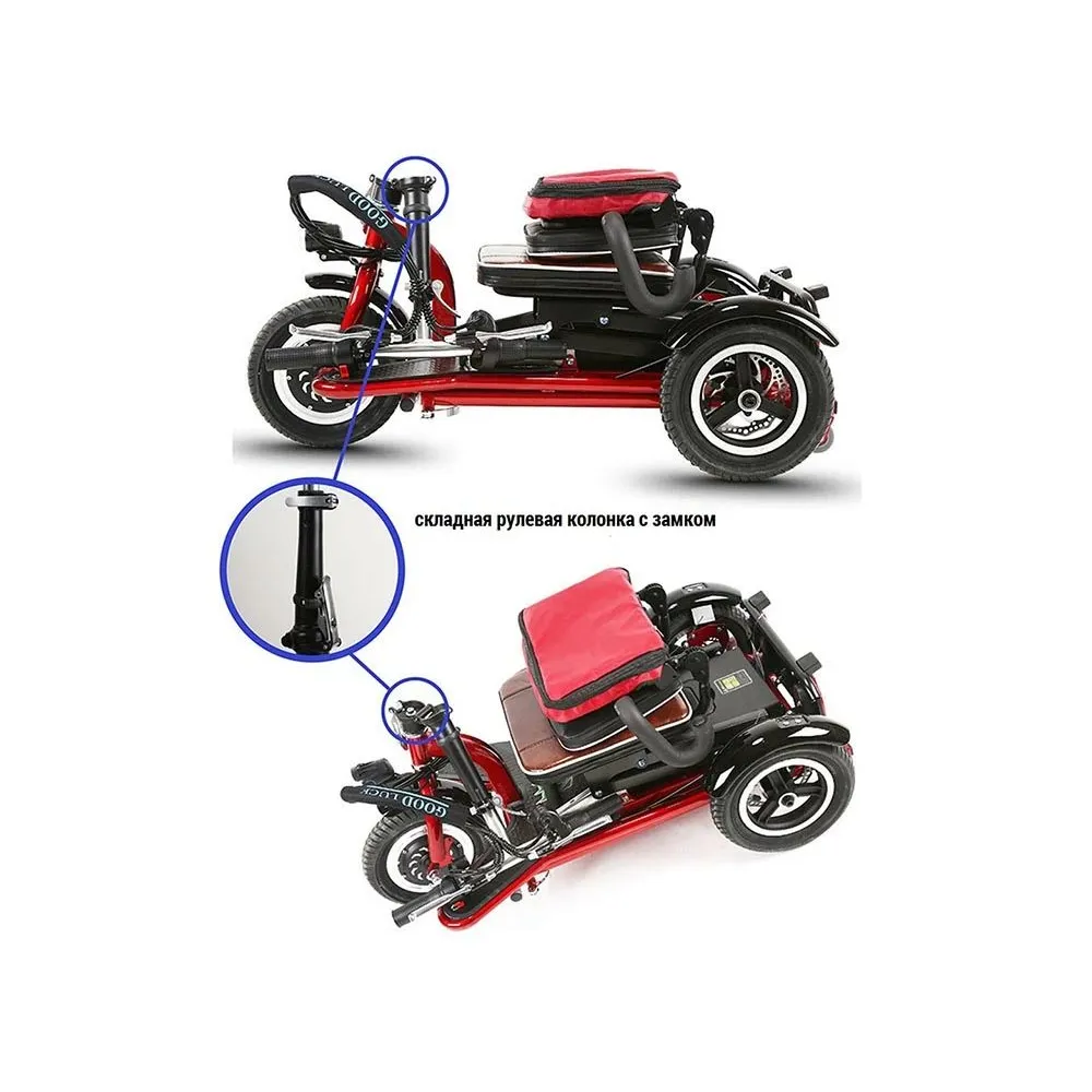 Технические характеристики, требующие внимание райдера – совершенствованы по максимуму, с учетом ошибок предыдущей линейки. Мощность современного трицикла (350 Вт) позволяет достигать скоростных характеристик до 25 км/час что достаточно для комфортабельной езды.  Управление скоростями проводится с помощью половинчатой ручки.