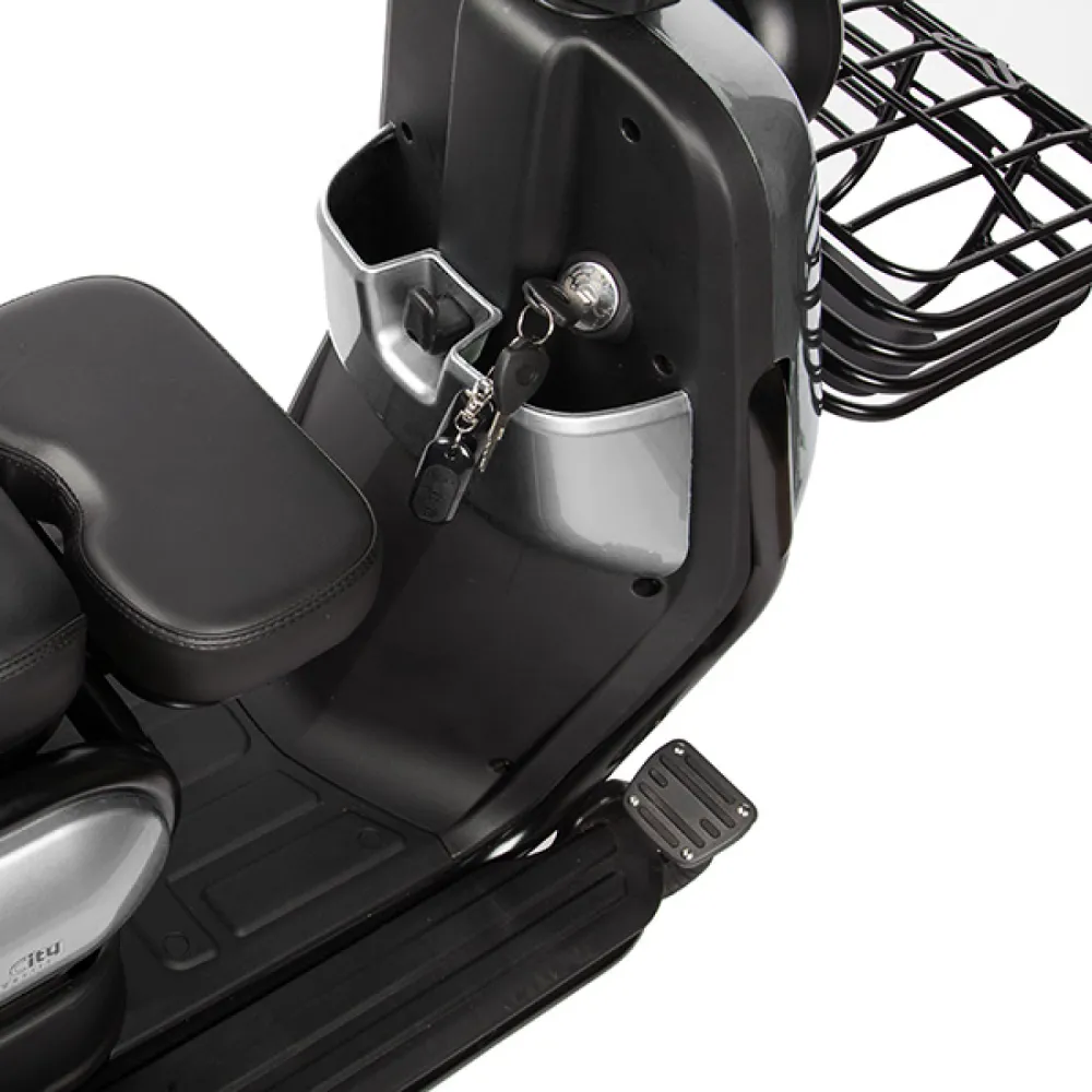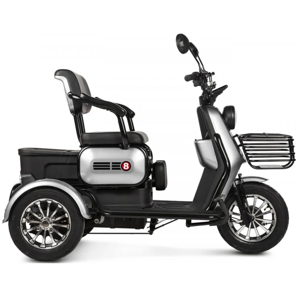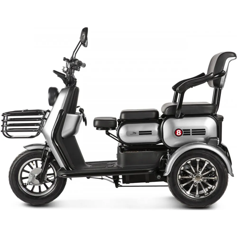 Электротрицикл Rutrike Патрон желтый – техника для семьи и активного отдыха с друзьями. Выглядит стильно и броско. Моментально привлекает внимание других райдеров. Получила популярность благодаря высоким параметрам комфорта, максимальной вместимости и безопасности. Приобрести модель по демократичной стоимости без вмешательства посредников предлагает наш интернет-магазин. Перед выбором техники производитель предлагает обратить внимание на преимущественные характеристики. Также акцентирует внимание, что АКБ не входит в комплектацию техники. Их пользователю придется покупать самостоятельно. Трицикл оснащен мощным электромотором на 650 Вт. Емкость батареи может быть разной, подбирается самостоятельно. Время подзарядки батареи колеблется от выбранного типа. Составляет 6-10 часов. В данной ситуации интернет-магазин предлагает воспользоваться консультацией нашего специалиста. Максимальный пробег без дополнительной подзарядки составляет 30 км, скоростные параметры – 25 км/час. Комфорт езды обеспечен удобным комфортабельным сиденьем, повторяющим анатомические части тела. Также техника оснащена дополнительным пассажирским седлом и детским. Последнее размещено перед воителем. Рулевая часть оснащена всем необходимым: современными светодиодными фарами, зеркалами заднего вида. Большие надувные колеса преодолевают небольшие препятствия, устойчивые. Своевременность торможения обеспечена барабанной системой. Наша продукция считается лучшей в своем сегменте. Торопитесь с оформлением заказа!