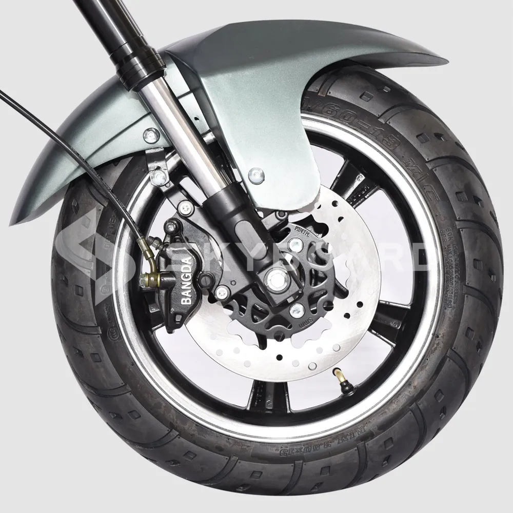Тормозная система состоит из профессиональных гидравлических тормозов, позволяющих скутеру моментально тормозить и маневрировать.