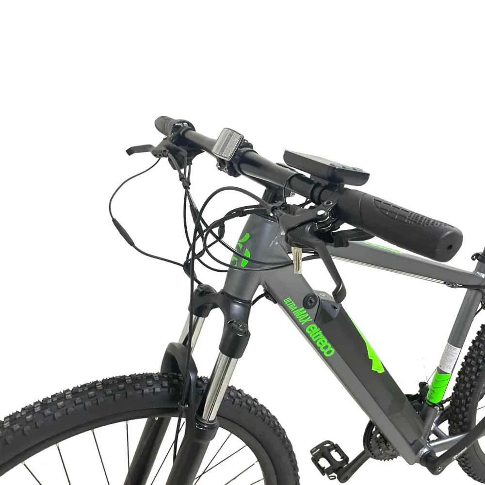Ultra Max имеет современную лёгкую раму, сделанную из алюминия. К раме крепится легкосъёмный, компактный аккумулятор, наличие или отсутствие которого практически не влияет на управляемость и манёвренность велогибрида. Данная модель оснащена 21-скоростной трансмиссией и практичными дисковыми механическими тормозами. Это позволяет комфортно передвигаться на велосипеде без использования электродвигателя.