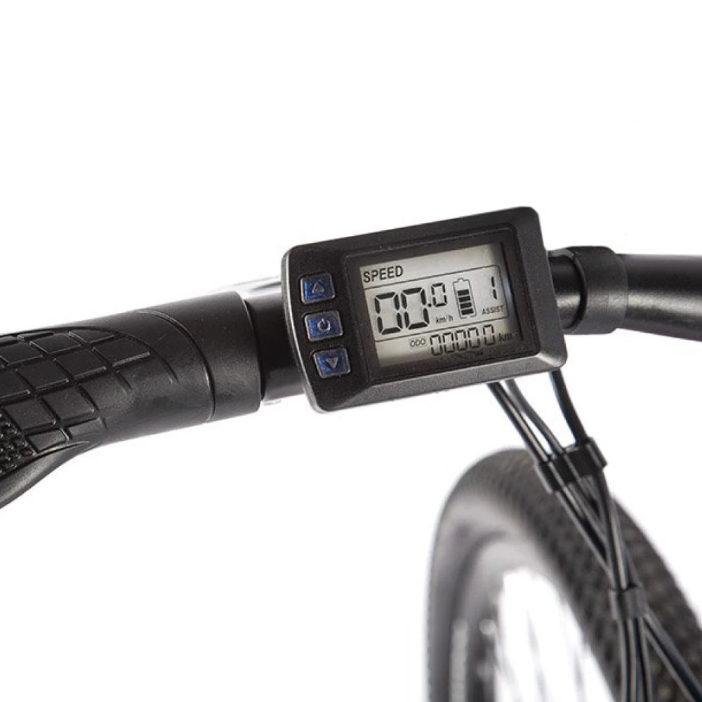 На борту установлен LCD-дисплей, который предоставляет основную информацию о состоянии велосипеда: текущую скорость, уровень заряда аккумулятора и другие важные параметры. Такая система упрощает управление и помогает всегда быть в курсе технического состояния устройства, способствуя более безопасной и комфортной езде.
