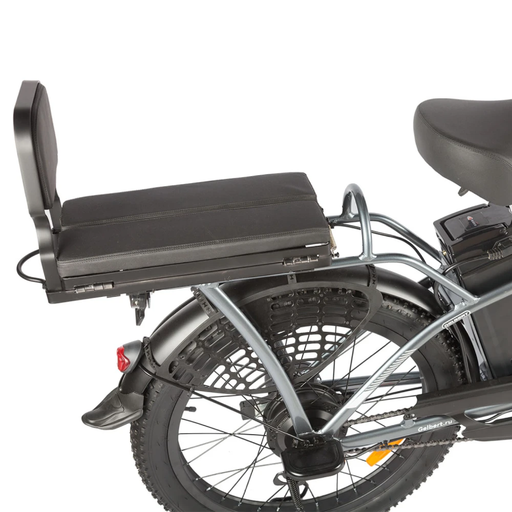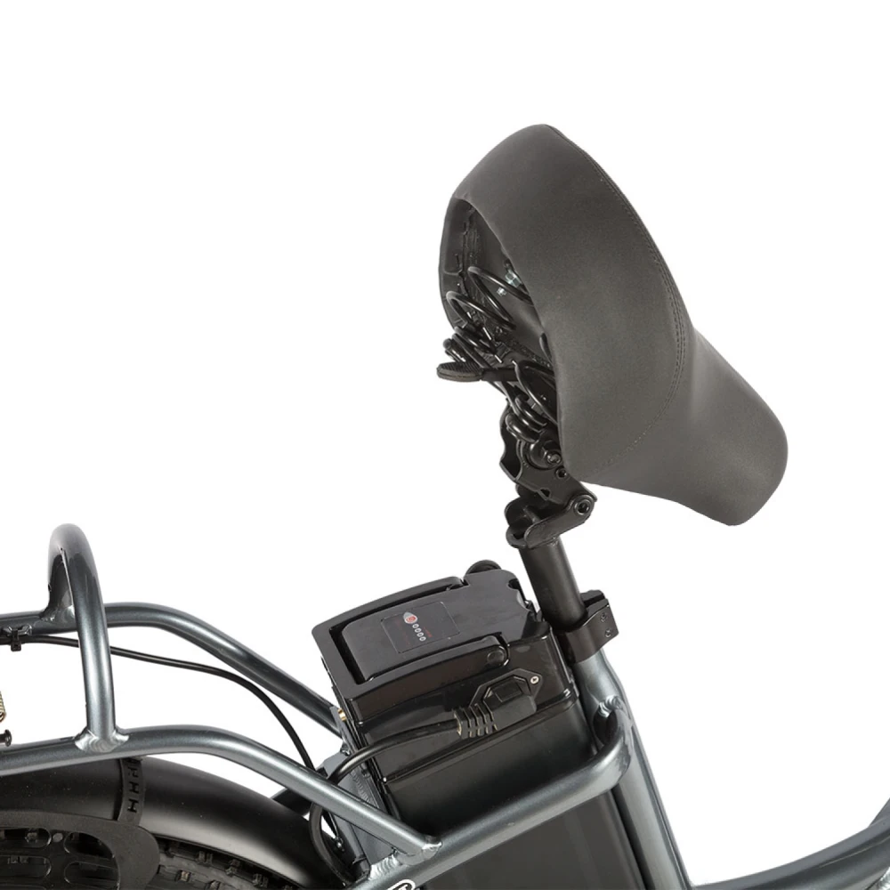 Платформа для ног, как у скутера, позволяет пассажиру ехать удобно, не зависая в воздухе. А ручка газа превращает езду в расслабленное удовольствие без педалирования.