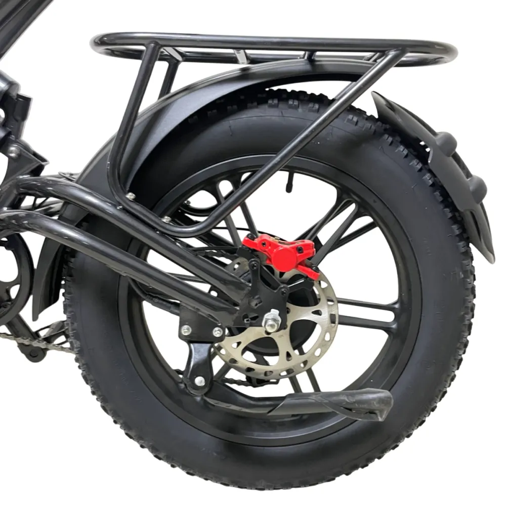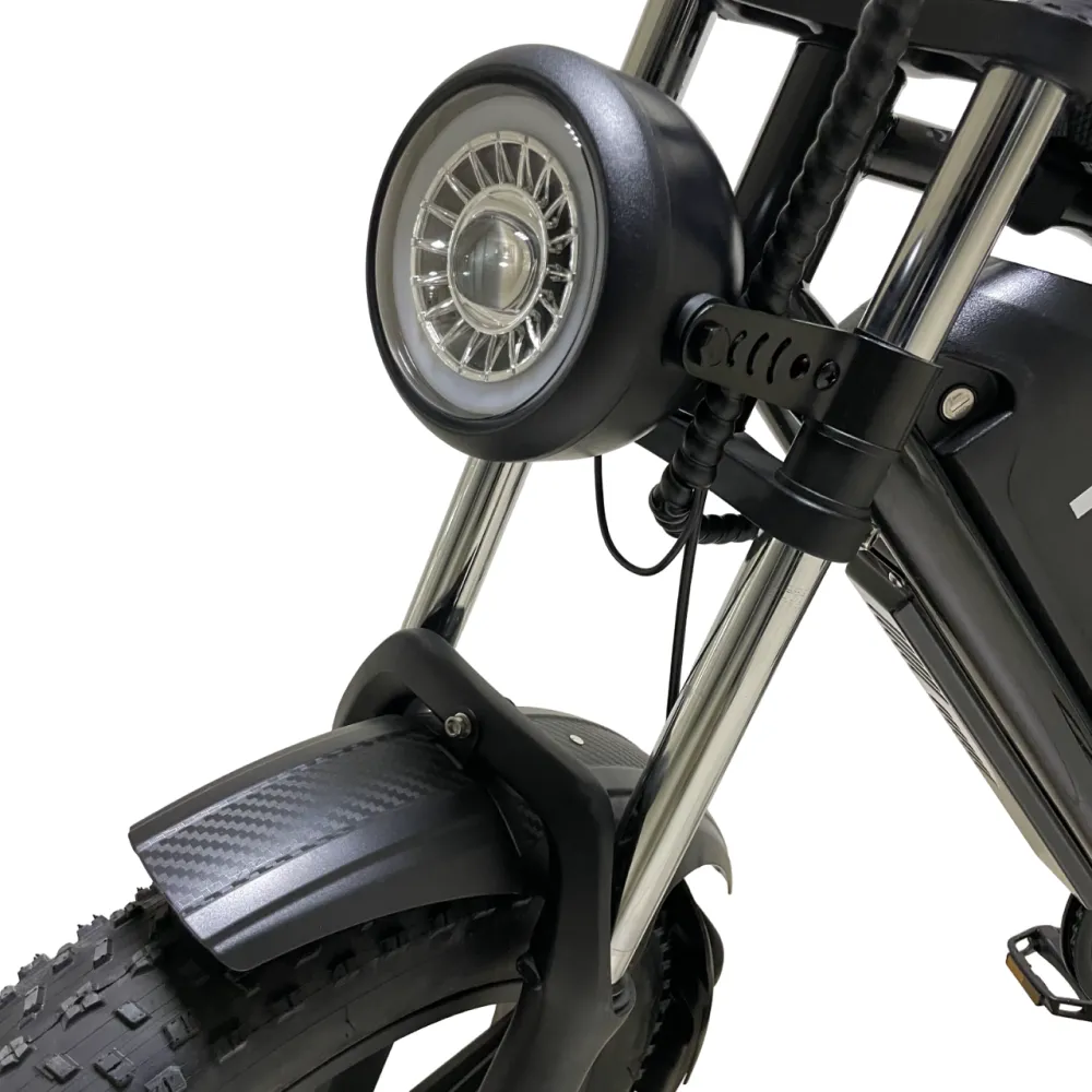 Электровелосипед Minako FOX 15Ah (Литые) в черном цвете – супербайк по лучшей стоимости предлагает купить наш интернет-магазин. Модель относится к категории быстро распродаваемой. Внешне напоминает мопед. Выглядит круто и презентабельно. Предназначен для активных пользователей, не представляющих жизни без экстрима. Прочная надежная рама, фирменная начинка обещает скоростную комфортную езду. Удобное комфортабельное седло исключает нагрузку на позвоночник, появление ощущения усталости. При мощности электромотора 1000 Вт максимальные скоростные параметры составляют 55 км/час. Емкости аккумулятора (15000мАч) достаточно для преодоления дистанции – 30 км). Батарея размещена в защитном блоке, исключающим внешнее повреждение устройства. 20-дюймовые колеса с 4-дюймовыми шинами выглядят агрессивно, накатистые, отлично сцепляемые с разными вилами поверхности. Безопасность эксплуатации гарантирована большой светодиодной фарой, фирменными тормозами и наличием бортового компьютера. Последний предоставляет полезную для райдера информацию: скоростные параметры и степень зарядки батареи. На электровелосипеде безопасно ездить по ровной дороге и пересеченной местности, в непогоду и любе время суток. Для заказа техники предлагаем сделать заявку сейчас или позвонить менеджеру.