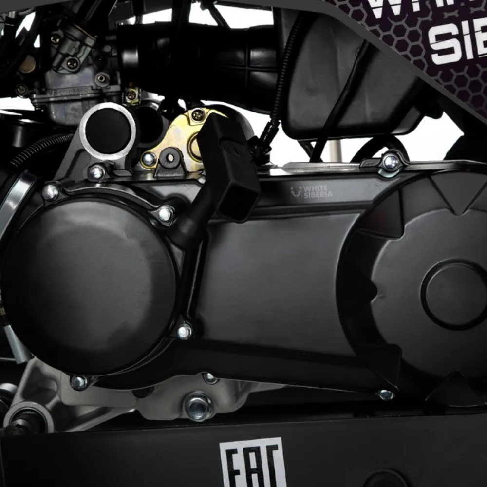 WHITE SIBERIA BARS 200CC PRO оснащен 200-кубовым четырехтактным двигателем мощностью 12 500 Вт (около 17 л.с.) с балансировочным валом, обеспечивающим плавность работы и надежность. Трансмиссия вариаторного типа с передним, нейтральным и задним ходом (F-N-R) упрощает управление и позволяет комфортно передвигаться в самых разных условиях. Модель отличается двухподвесной системой: передняя — 2-х рычажная шаровая, задняя — гидравлический амортизатор с регулировкой жесткости, что обеспечивает плавный ход и устойчивость даже на неровностях. Каркас из стали повышает прочность и долговечность квадроцикла. Среди уникальных решений — подогрев ручек для комфорта в холодное время года и наличие лебедки для самовывоза из трудных мест. Модель получила положительные отзывы за сочетание мощности и плавности хода в своем классе.