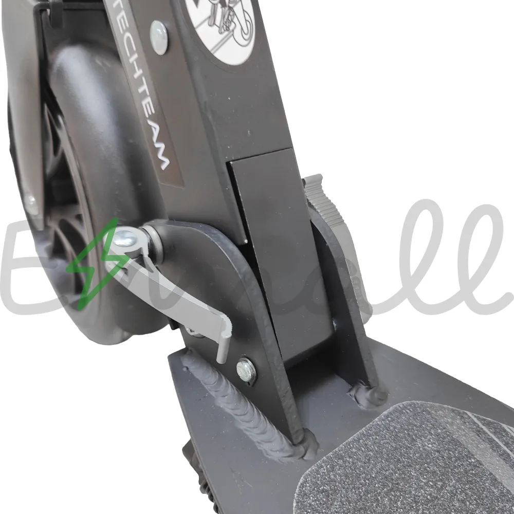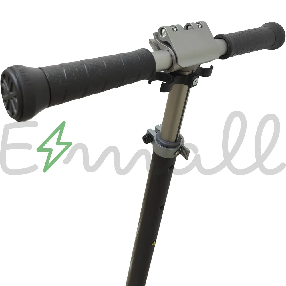 Рулевая часть изготовлена из высокопрочного алюминия, регулируется в 3-х положениях 880-960-1040 мм от поверхности. Самокат оснащен дисковой тормозной системой, 2 амортизаторами, благодаря которым движением становится плавным и безопасным.