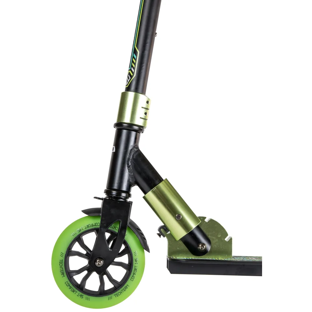 Самокат Tech Team COMFORT 145R 2022 черно-зеленый понравится необычным дизайном и заметностью. Техника рассчитана для езды по городской местности и парковой зоне. Брендовые логотипы и особое отношение к оформлению по достоинству были оценены пользователями. Приобрести модель выгодно, получить бесплатную консультацию предлагает наш интернет-магазин.