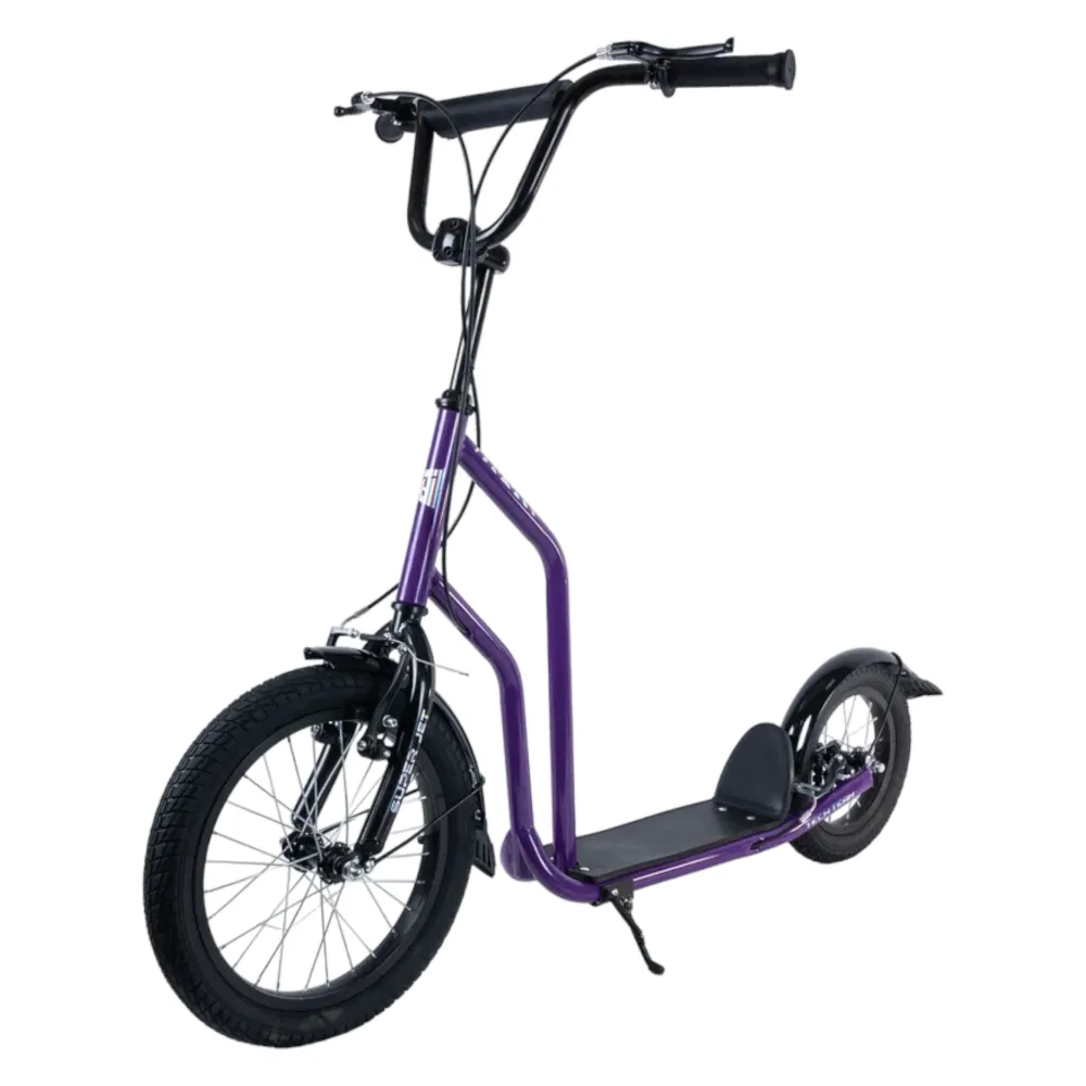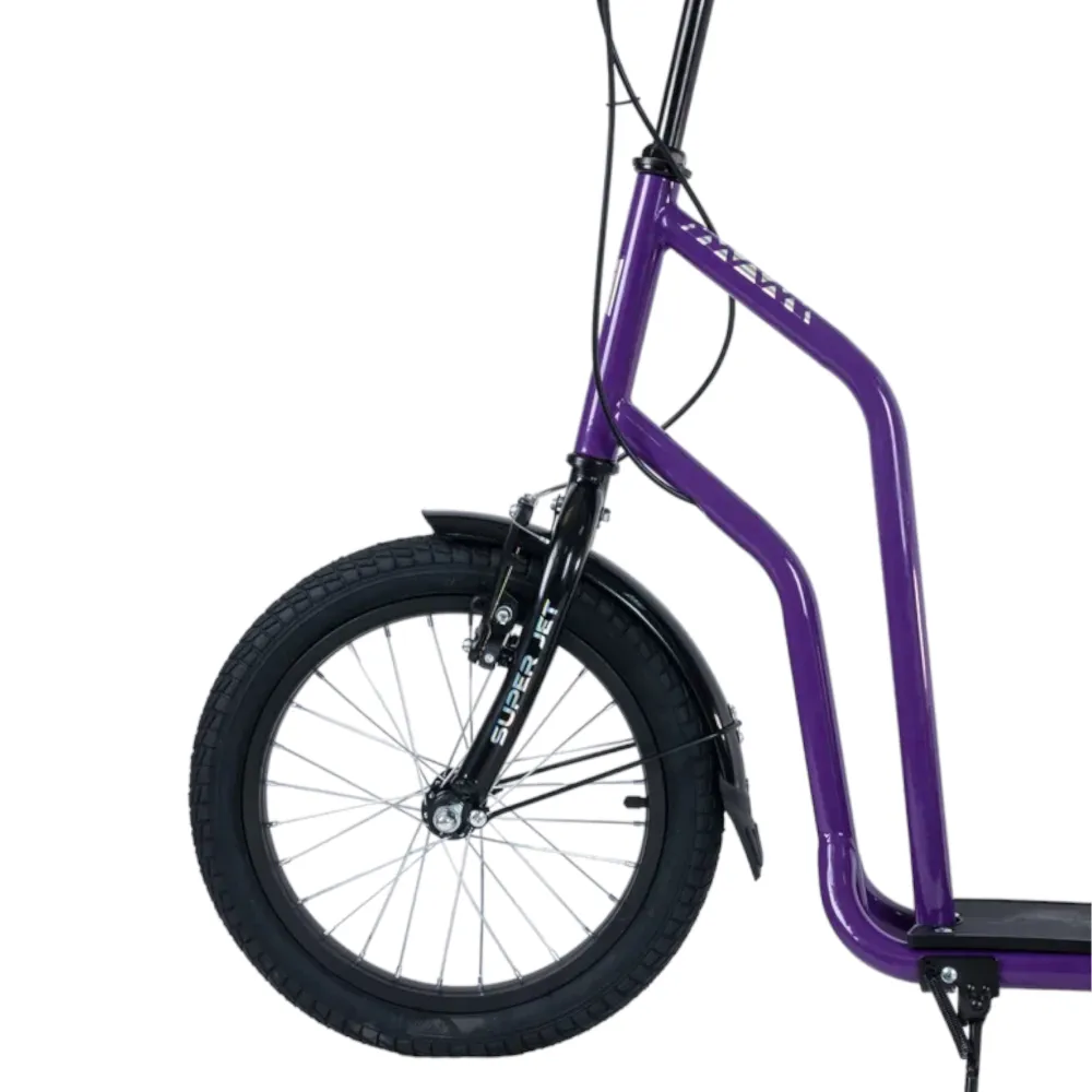 Tech Team Super Jet 700 2024 года в фиолетовом цвете - это стильный и функциональный городской самокат. Его необычный дизайн напоминает велосипед, что делает его выделяющимся среди других моделей. Спереди установлено большое колесо диаметром 406 мм, а сзади - 305 мм, что обеспечивает отличную устойчивость и маневренность. Ободные тормоза и велосипедный руль с двумя ручками тормоза гарантируют надежное управление и безопасность. Максимальная нагрузка до 100 кг и легкая алюминиевая рама весом 8,1 кг делают этот самокат идеальным выбором для ежедневных поездок по городу.