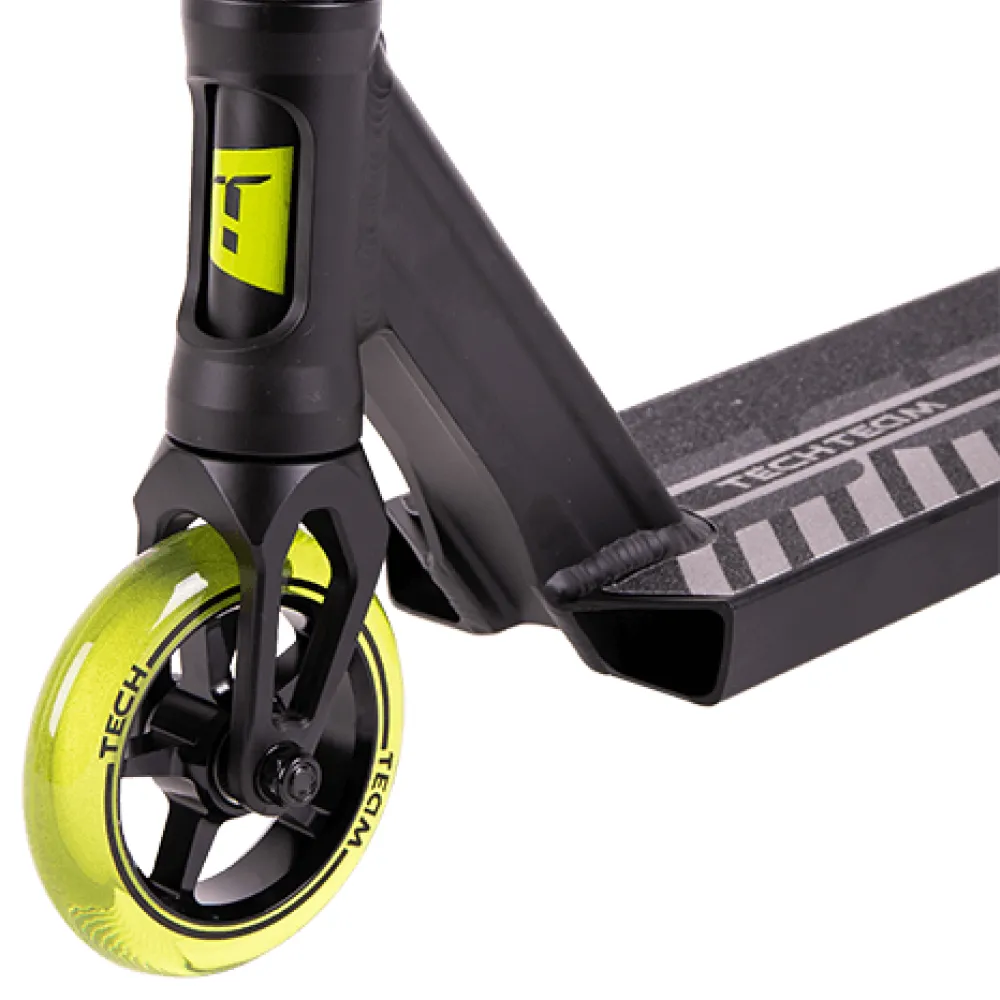 На этапе изготовления компания tech учла ошибки предыдущей линейки. Самокаты tech для начинающих райдеров изготовлены из высокопрочного надежного материала. Парковый самокат имеет алюминиевую деку габаритами 49х12 см с футспейсом 34 см. Оснащенность team scout конкейвом позволяет осваивать трюковые элементы, контролировать действия ездока. Трюковый самокат tech team имеет Т-образную форму руля. Ширина руля составляет 54см. Высоты руля от зажима (61,5 см) достаточно для ездоков начального уровня. Базовая модель techteam scout оснащена накатистыми полиуретановыми колесами с металлическим сердечником, промышленными подшипниками Abec 9. Каждый из трюковых элементов гарантирует максимальный разгон, важный для каждого трюкача.