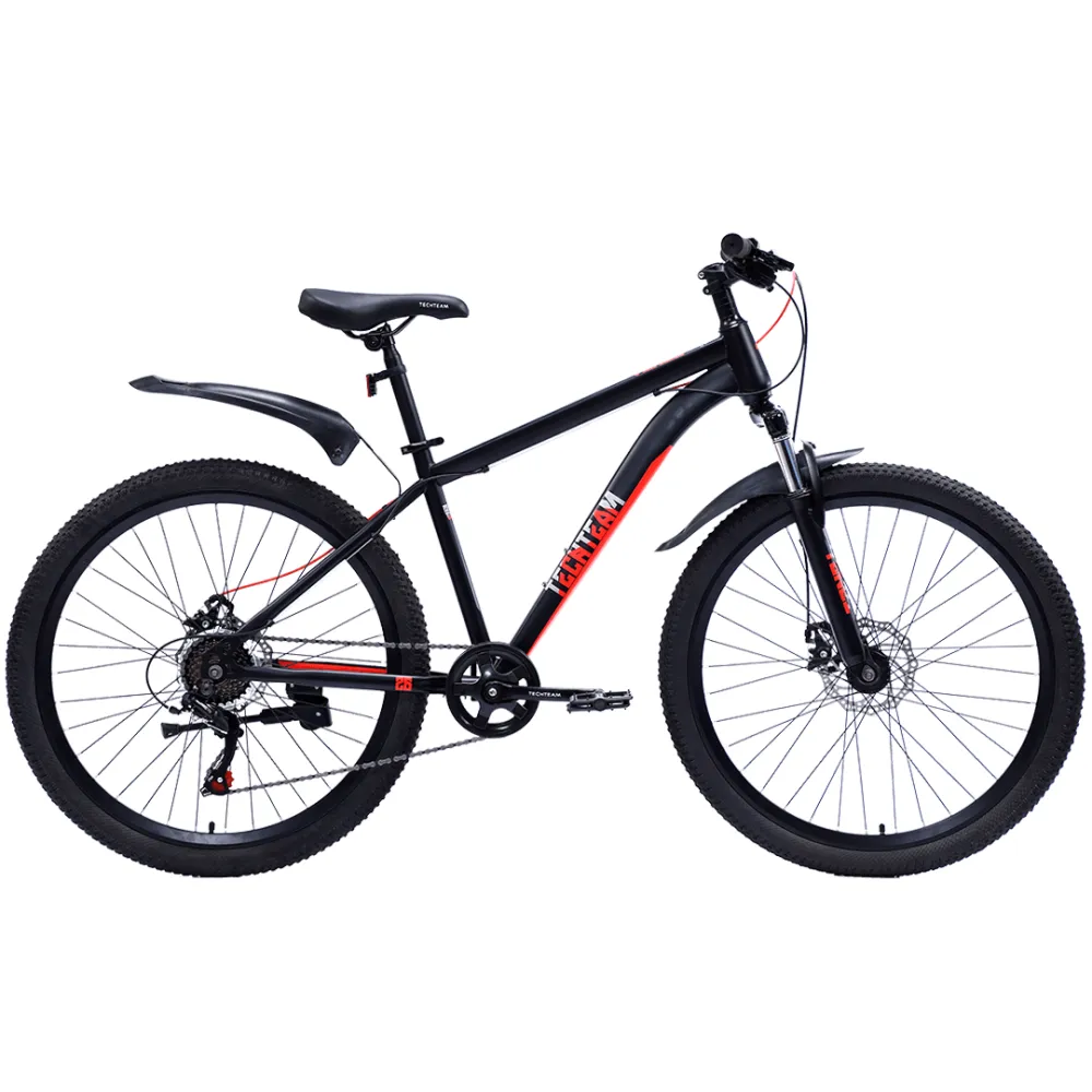 Велосипед имеет прочную конструкцию с высокой рамой и оснащен качественными комплектующими. Рулевая вилка включает в себя амортизационные пружины, которые смягчают наезд на дорожные неровности. Колеса оборудованы стальными втулками на болтах, что обеспечивает их свободное вращение. Руль и подседельный штырь регулируются в соответствии с ростом пользователя. Полная и быстрая остановка обеспечивается фирменной тормозной системой, состоящей из дисковых тормозов. Пластиковые педали вращаются свободно, не вызывая сложностей. Двойные алюминиевые обода с 26-дюймовыми покрышками обеспечивают большую проходимость в любых дорожных условиях.